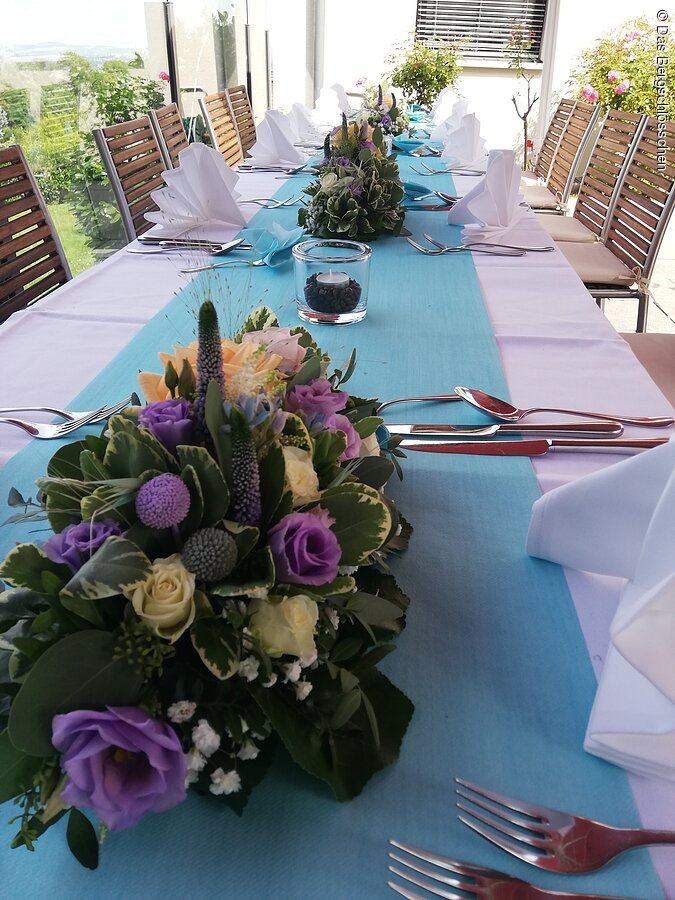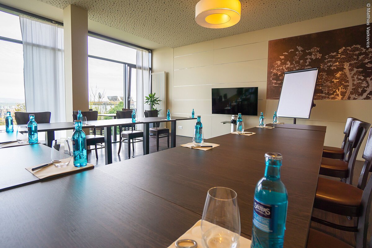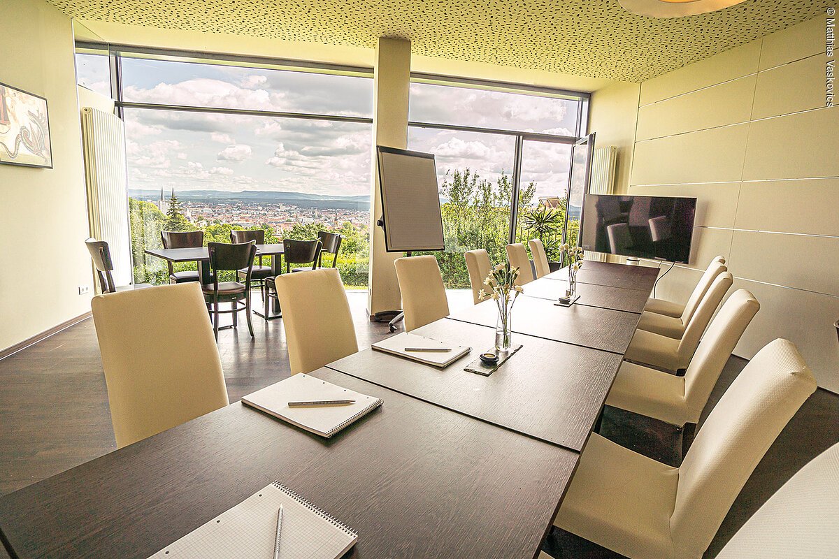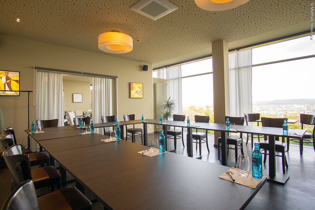 Das Hotel Bergschlösschen verfügt über 3 Gasträume mit Panoramablick über die Stadt mit je 38qm. Die Gasträume sind mit einer Glasschiebetür miteinander verbunden.