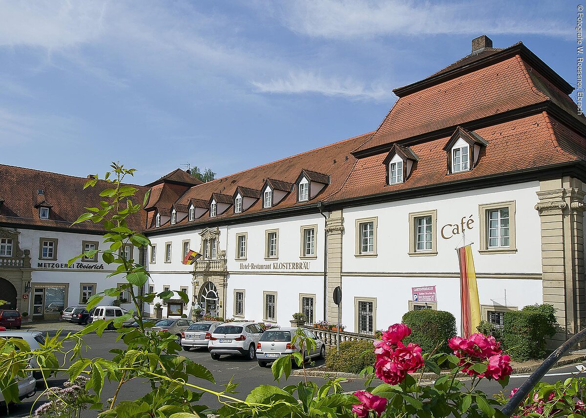 Inmitten des Naturparks Steigerwald, im staatlich anerkannten Erholungsort Ebrach befindet sich das im 18. Jahrhundert erbaute Gästehaus der Zisterzienser, das Historikhotel Klosterbräu - seit 1955 im Besitz unserer Familie.