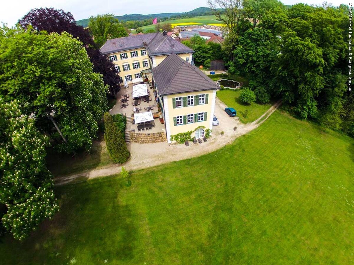 Geniessen Sie drei Stunden Auszeit bei einer Wanderung auf die nahegelegene Hohe Metze. Sie starten am Schloss und der Weg führt Sie über Wiesen und durch Wälder auf einen der höchsten Berge der fränkischen Schweiz. Auf dem Hochplateau angekommen haben Sie einen fantastischen Blick auf das Regnitztal und die Stadt Bamberg. Die von uns vorbereitete Brotzeit und das fränkische Bier kräftigt Sie für den Heimweg