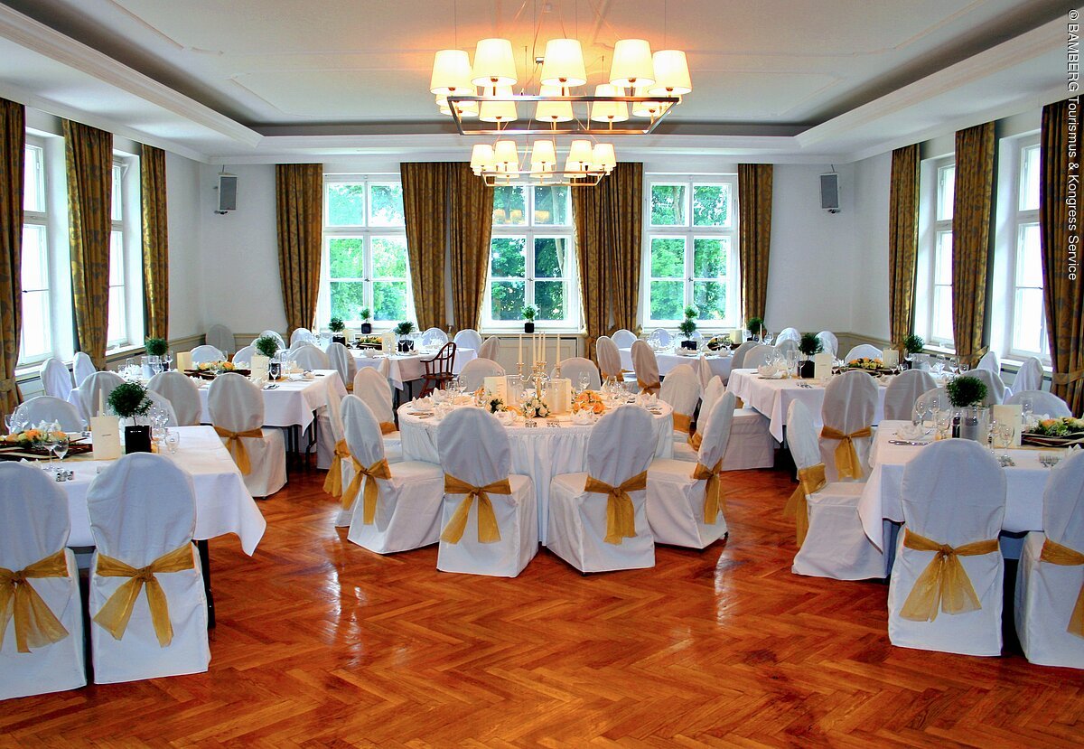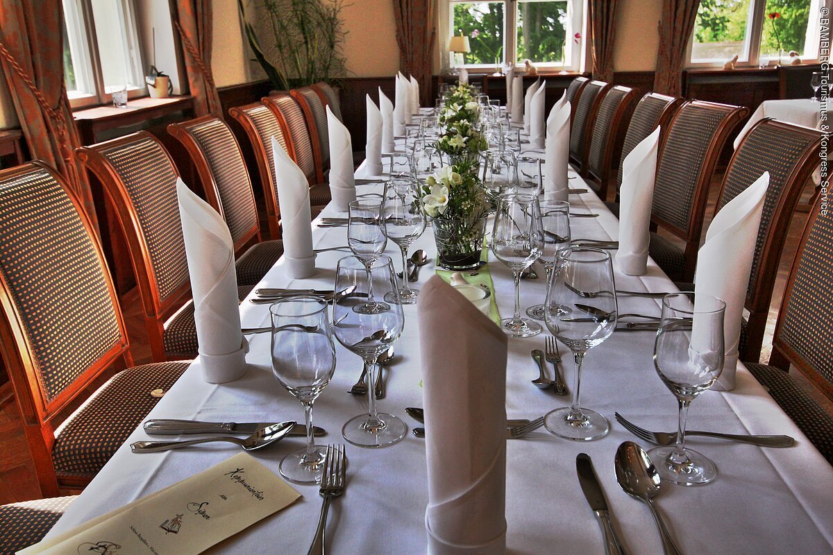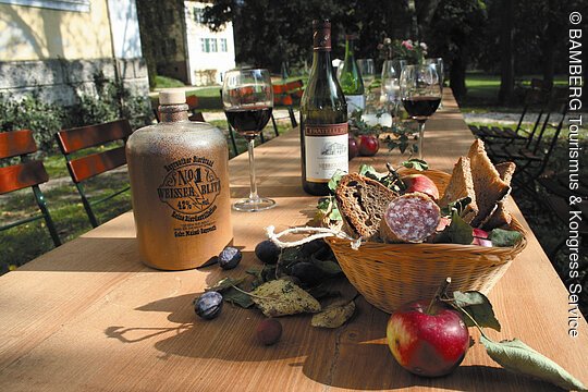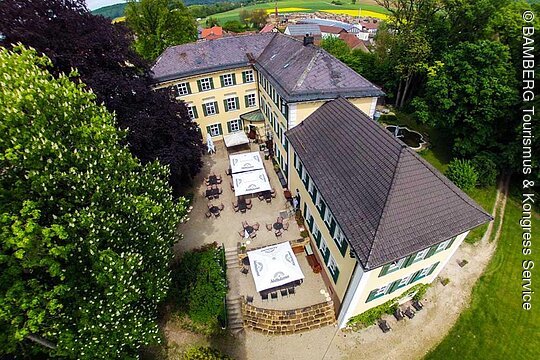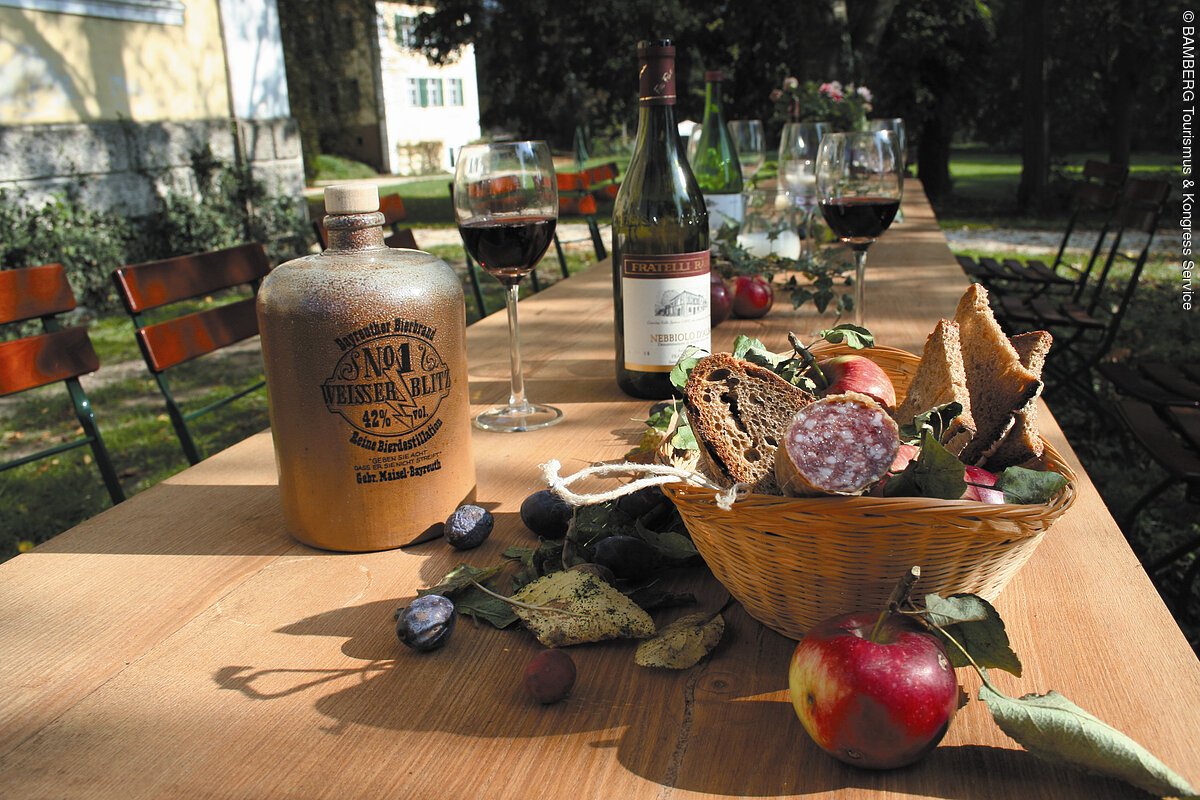 Geniessen Sie die Weite unseres Schlossparks und feiern Sie mit Ihren Gästen in unserem Biergarten ein Sommerfest mit fränkischem Fassbier zum Selberzapfen, den berühmten Bamberger Bratwürsten und allerlei anderen Fleisch- und Fischspezialitäten aber auch Vegetarisches vom Grill.
