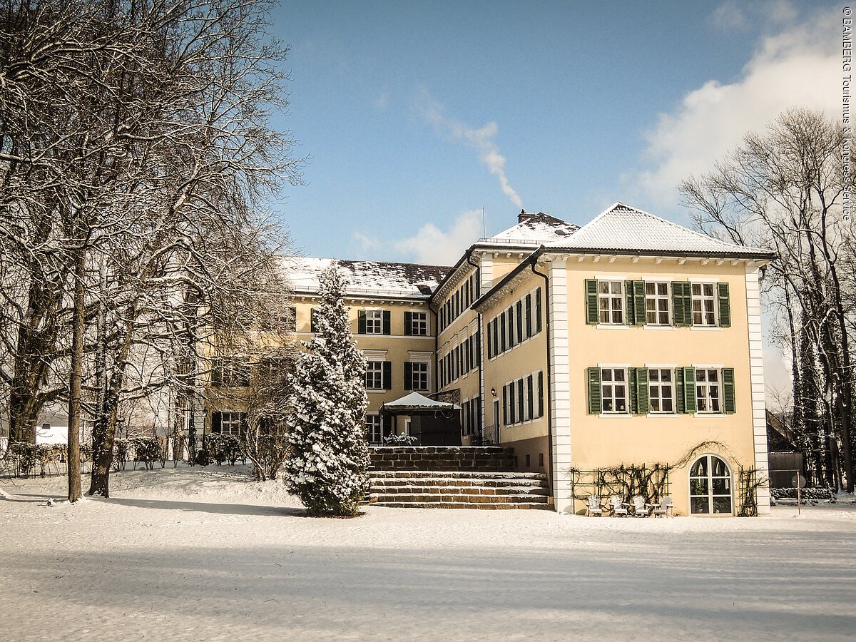 Im neu renovierten Wasserschloss mitten im Schlosspark