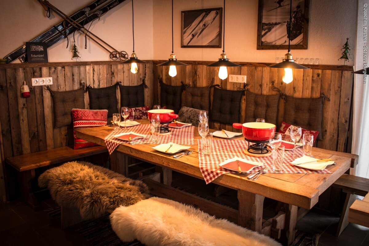 In der Adventszeit wird bei uns gemütlich. Geniessen Sie mit Ihren Gästen Weihnachstspezialitäten im Schloss Burgellern. Zur Einstimmung empfangen wir Sie bei offenem Feuer vor unserem Schloss mit selbstgemachtem roten und weißen Glühwein und heißer Caipirinha. Danach feiern Sie je nach Wunsch und Personenanzahl oder Wunsch in unserem Restaurant, Schönbornsaal oder Wasserschloss.